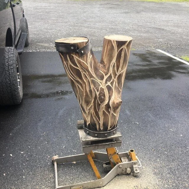 Took a drive out to Mystic Farm in Pennsylvania and Michael “Copper Mike” Cole hooked us up with this piece of raw pine trunk, and this table was created from there.